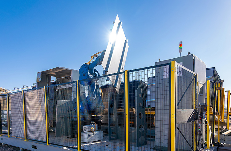 自動化された移動式の組立ラインに自律走行型の作業ロボットを組み合わせることで、太陽光パネルシステムの組立を現地で一元的に行い、発電所建設に工場レベルの効率性をもたらす手法
